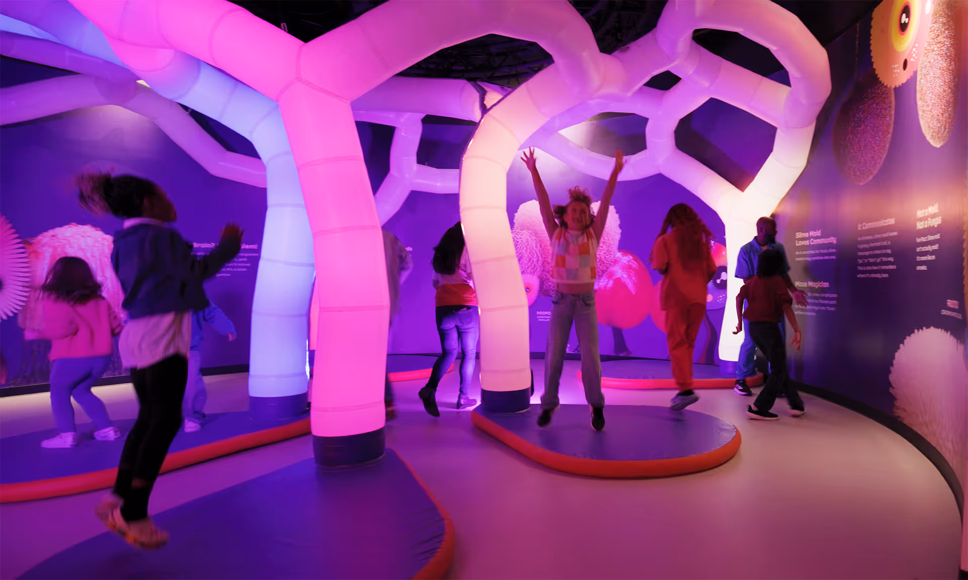 When you get a ticket to the Sloomoo Slime Bar, you enter the Sloomooverse where you add slime our Sloomoo & Repeat wall, slingshot slime, sink your hands in Kinetic Sand, explore all kinds of slime textures in oversized vats and more.