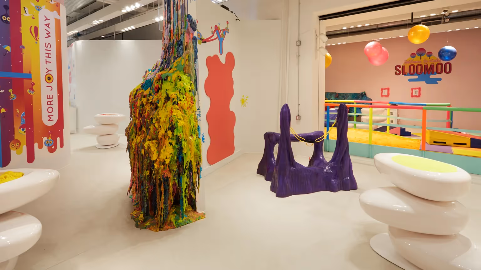 At Sloomoo, visitors can smoosh in their hands a wide variety of gooey slime of different textures, colors and viscosity.